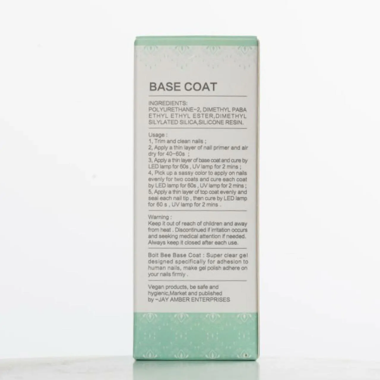 Bolt Bee Base Coat (15ml) is a professional quality gel polish that provides a smooth and durable base for your nail art. It is easy to apply and cure with a UV or LED lamp, and it helps to protect your natural nails from damage. Bolt Bee Base Coat (15ml) is compatible with any gel polish brand and color, and it can be removed with a magic remover or acetone. Whether you are a beginner or a professional, Bolt Bee Base Coat (15ml) is a must-have for your manicure kit.