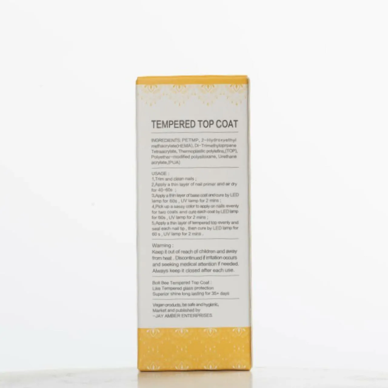 Bolt Bee Tempered Top Coat is a high-performance nail polish that protects your manicure from chipping and fading. It creates a glossy, smooth and durable finish that lasts up to 14 days. Bolt Bee Tempered Top Coat is easy to apply, fast-drying and vegan-friendly. It comes in a 15ml bottle with a wide brush for precise application. Bolt Bee Tempered Top Coat is the perfect choice for salon-quality nails at home.