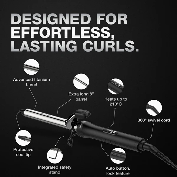 The innovative auto button lock feature prevents accidental temperature adjustments, ensuring a seamless and safe styling experience. With a maximum heat setting of 210°C, this curler heats up quickly and is suitable for fine, delicate hair as well as thick, coarse textures. The heat-resistant cool tip provides added safety, allowing you to hold the curler securely while wrapping hair for precise styling.