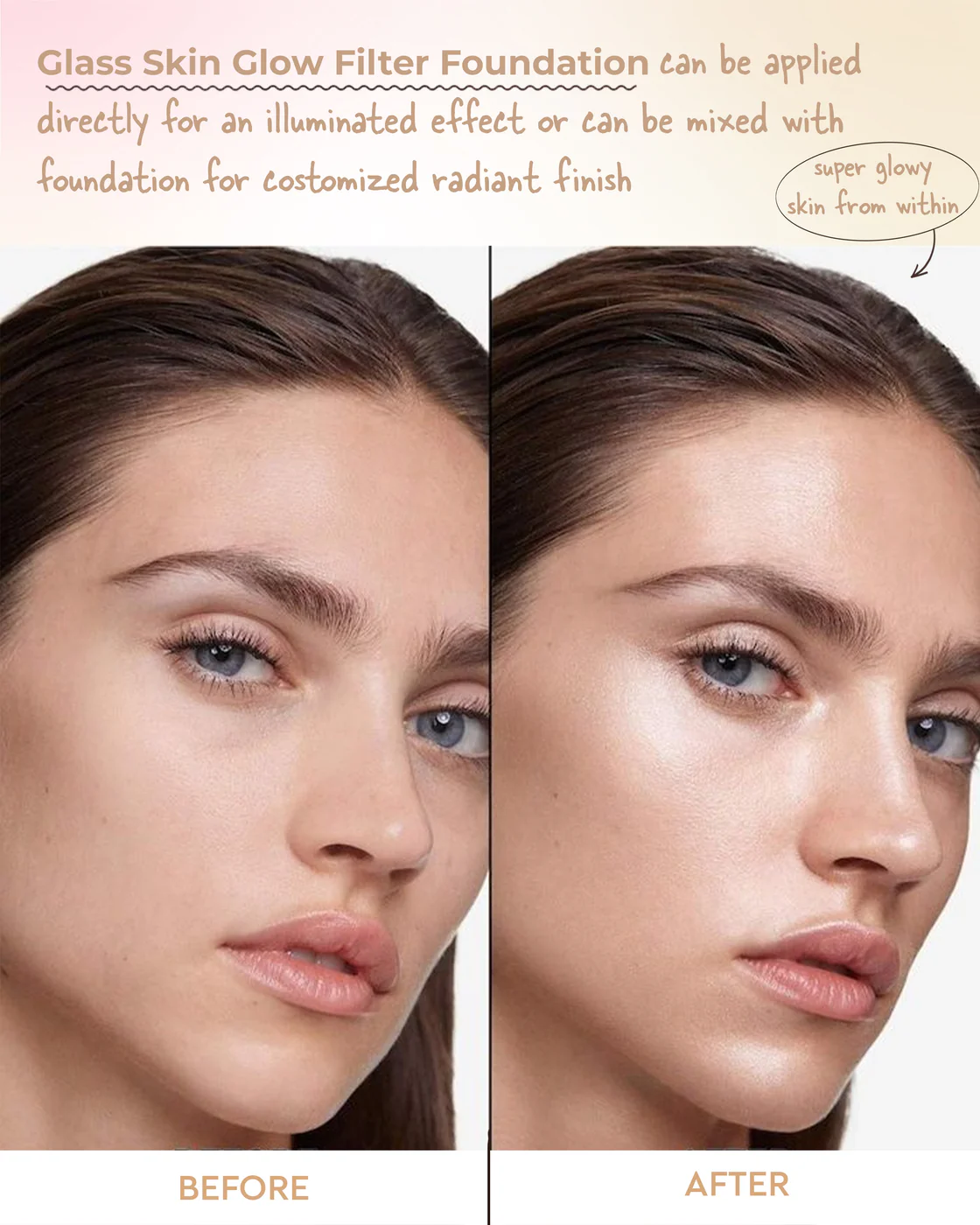 - The Glass Skin Glow Filter comes in versatile shades that enhance all skin tones. Choose your pick between Milky and Ganache.