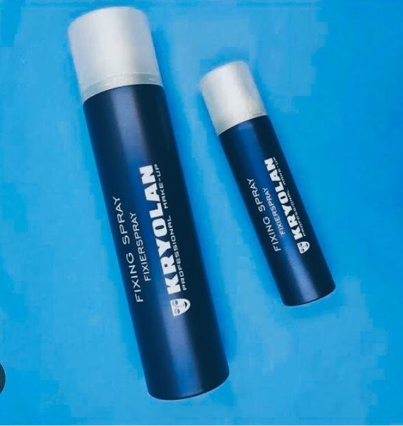 Fixing Spray is a special cosmetic preparation for application over make-up. It creates an invisible protective film, which prolongs the life of the make-up and its effects. Fixing Spray is particularly effective for bodypainting with Aquacolor and with other wet make-up preparations. Fixing Spray is applied from a distance of approximately 30 cm thinly and evenly and allowed to dry. The protected make-up is then smudge and rub-proof and withstands even excessively harsh effects and exposure. Fixing Spray makes any make-up resistant to cold water and considerably delays the deterioration of make-up on the skin as a result of perspiration. Fixing Spray contains alcohol and should not be applied near eyes or mucous membranes. Fixing Spray can be easily removed with soap and warm water.