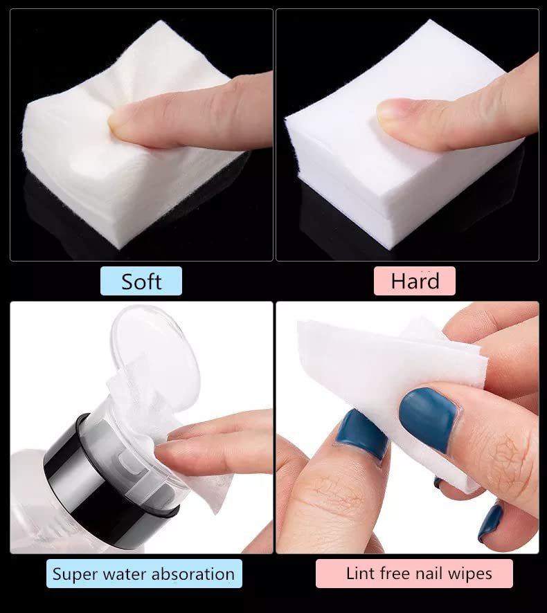 Nail wipe cotton pads material: cotton and non-woven fabrics,They are Soft,odorless and sanitary,Great for use Nail Polish Remover finishing wipe, Strong moisture absorption and decontamination capabilities. 900pcs no lint nail wipes,it is easy to carry, large quantity for long term use. Lint free nail wipes can be used for wiping glue of eyelash extension and as nail wipe pads to clean your nails,suitable for individuals, nail salon shops. Lint nail wipes Conveniently designed for ease and comfort Soft touch easily absorbs nail remover without shedding.