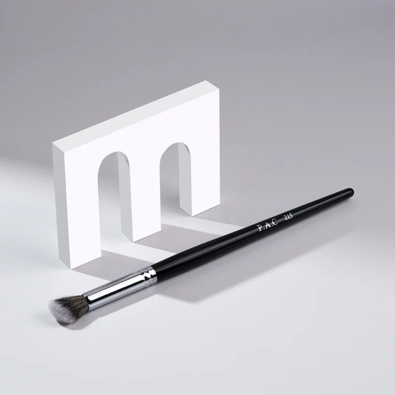 This slightly angled PAC Concealer Brush 215 helps not just in concealing but also in soft blending of edges and sharp lines. Softly sweep color across your lid or brighten your brow bone using this fluffy but slant angled, classic blending brush.