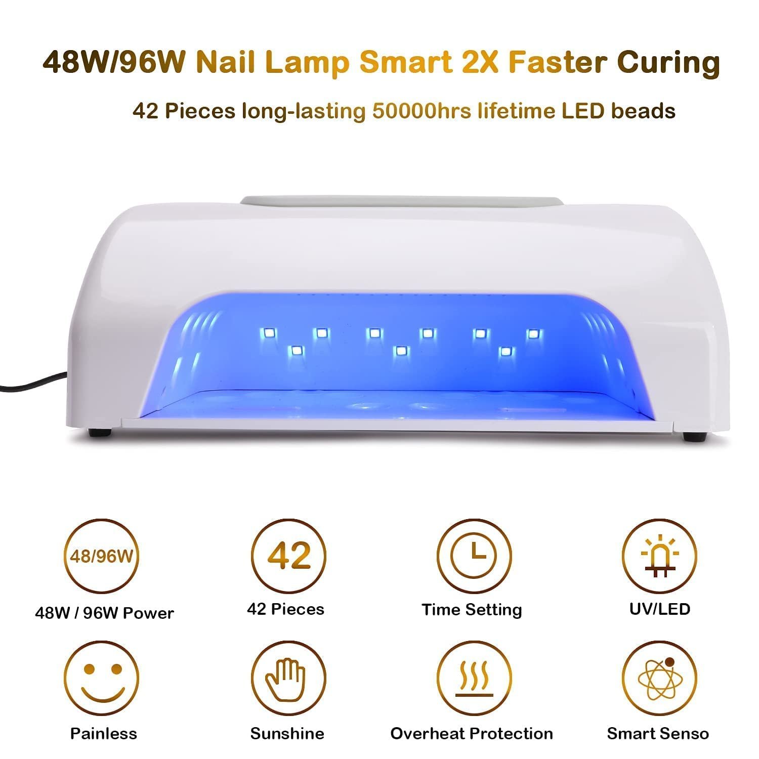 • Nail Lamp for Curing: 96W(max)—48W(min)