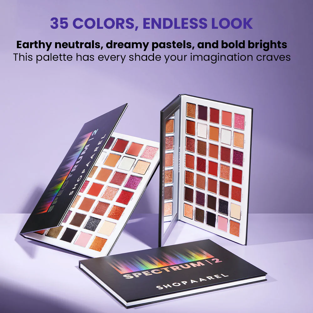 Unleash the artist in you with the Spectrum-2 Eyeshadow Palette a vibrant symphony of 35 ultra-pigmented shades blending dazzling mattes, shimmering gems, and rich, expressive tones. Crafted for those who dare to dream in color and create boundless looks, this palette is your ultimate beauty companion.